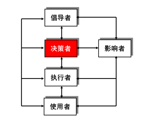 影响者可能直接对决策者产生影响,还可能影响采购倡导者、执行者和使用者,使之成为影响者,进而影响决策。