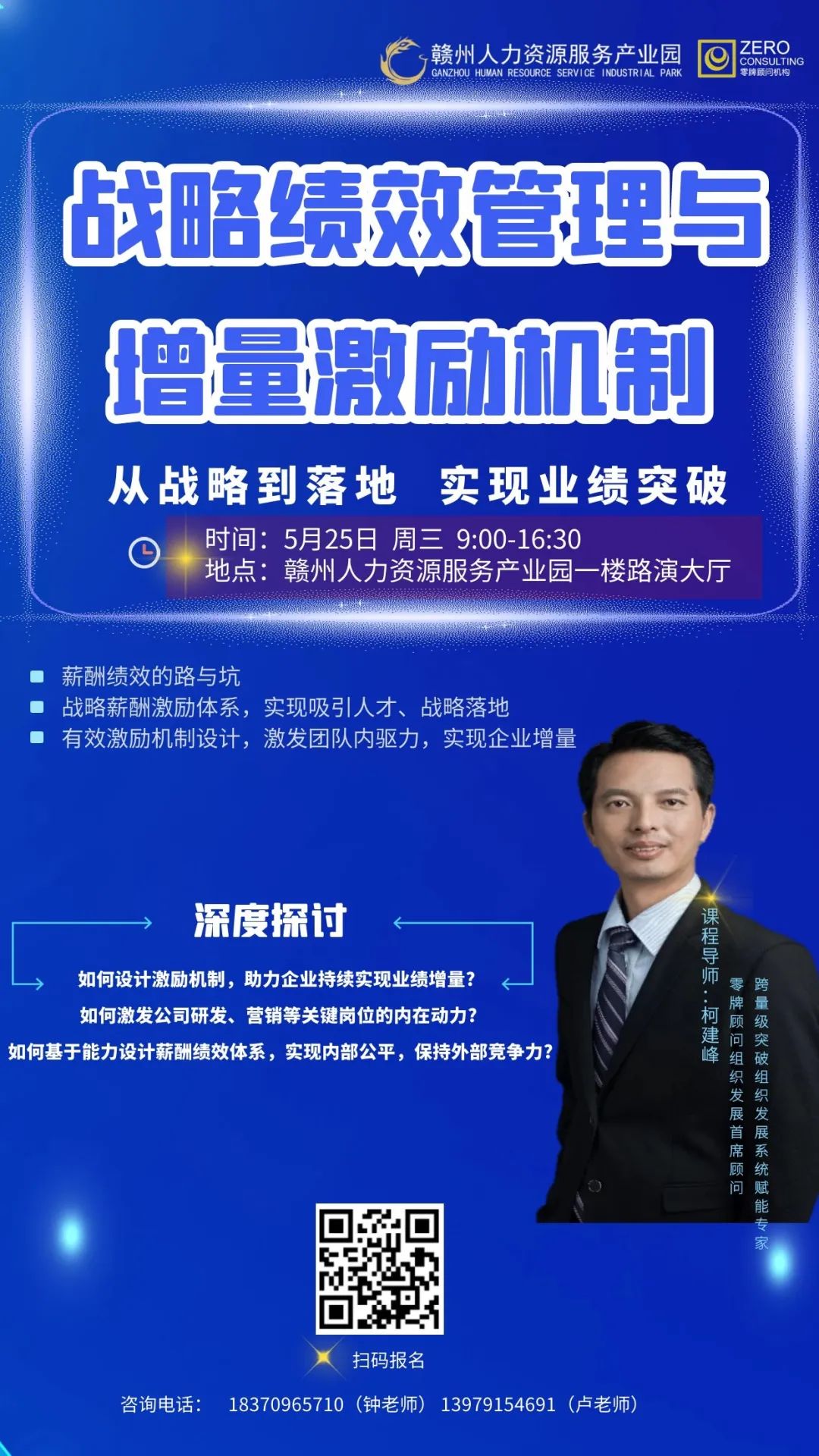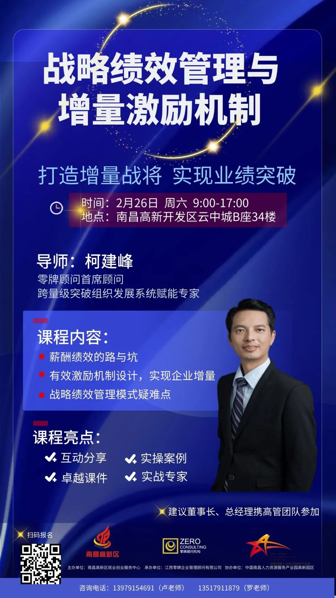 5月25日公开课预告 |《战略绩效管理与增量激励机制》赣州站开启报名!