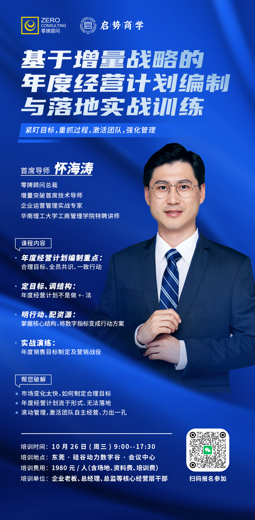 10月26日公开课预告 | 《基于增量战略的年度经营计划编制与落地实战训练》东莞开课