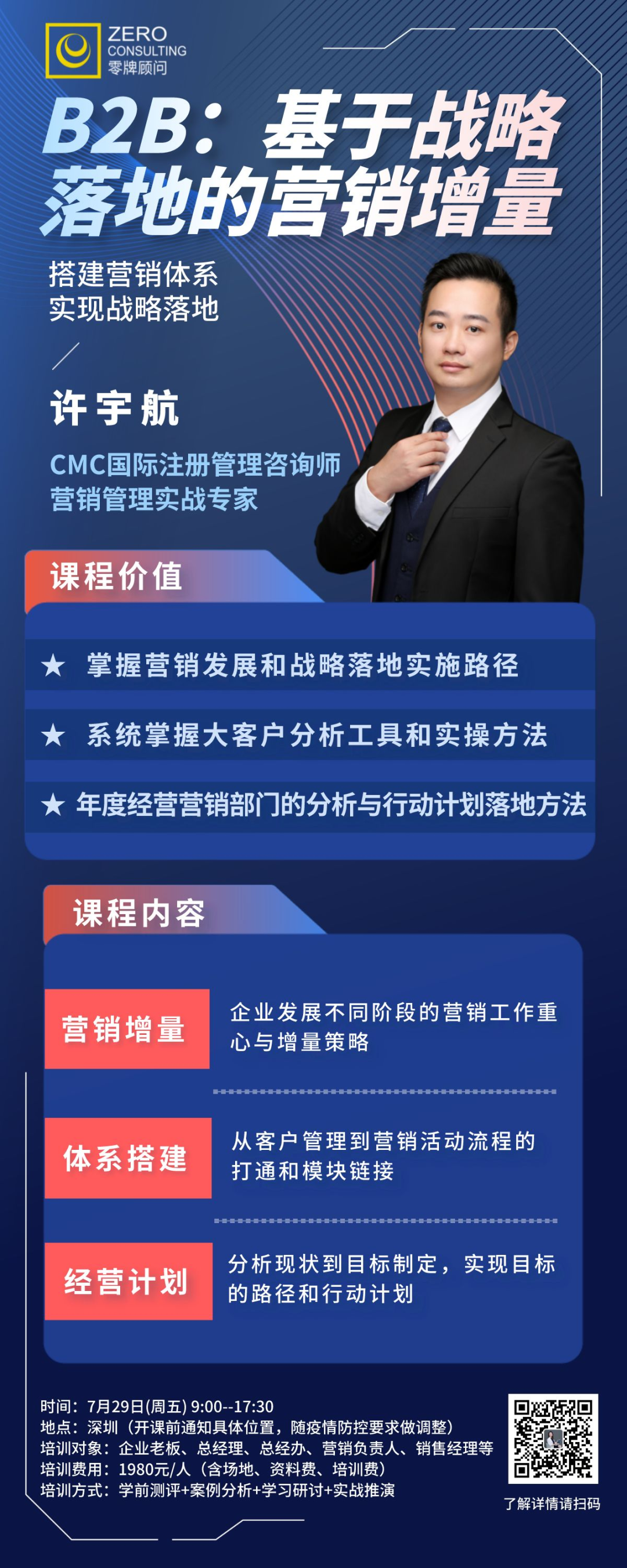 7月公开课预告 | 《B2B:基于战略落地的营销增量》深圳开课