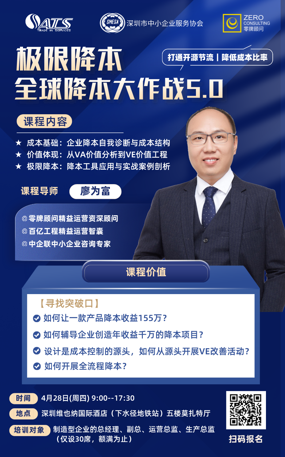 4月28日公开课预告 | 《极限降本:全球降本大作战5.0》来深圳了!