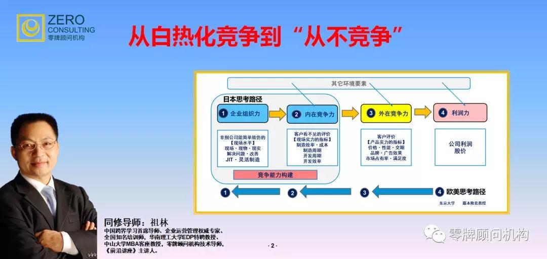 【从内在竞争力到外在竞争力】与欧美企业的倒推思维相反,日本企业重视从内在竞争力到外在竞争力的正向构建,从别的公司无法模仿的组织力(现场水平)到客户看不见的现场实力,再到客户看得见的产品实力,最终体现在企业的盈利能力和股市评价。