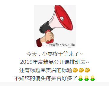 今天,小零终于等来了~ 2019年度精品公开课排班表~ 还有标题党美眉的标题 不知您的偏头疼是否好多了
