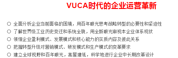 ○ 全面分析企业当前面临的困境,用百年眼光思考战略转型的必要性和紧迫性 ○ 了解世界级工业历史变迁和系统全貌,用全新眼光审视本企业体系现状 ○ 领悟企业盈利模式、发展模式和核心能力的实质内容及彼此关系 ○ 把握转型升级对营销模式、研发模式和生产模式的变革要求 ○ 建立全球视野和百年眼光,高屋建瓴,科学地进行企业中长期改革设计