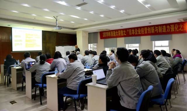 1月23日,2018年首期润通大讲堂在润通工业园办公楼317培训室火热开讲,本期特邀讲师——松下电器(中国)前总裁Kimoto Tetsu(中文:木元哲)先生以“日本企业经营创新与制造力强化之道”为主题,给大家带来了一堂理论学习与实践指导价值俱佳的课程。公司全体中高层管理人员50余人现场聆听了本次讲座。