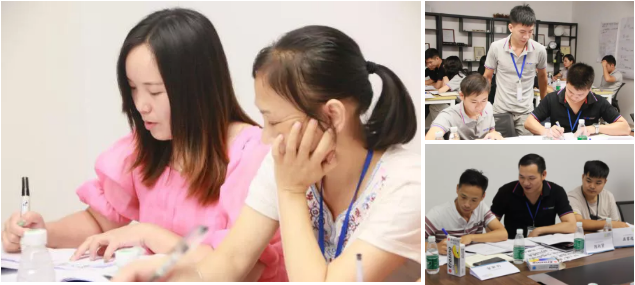 课程中,通过以“高效团队建设 个性化生产模式打造”的主题为主线,以6个小组为单位组织展开。结合各个部门当前的工作、订单流程等实际情况进行了调查,并根据当前存在的短板与不足制订了针对性的培训方案大家对管理中的困扰讨论热烈,每次练习积极参与,每位伙伴都充满小组荣誉感,争先上台分享,小组分值不分上下,课程结束第三组获得了第一名。