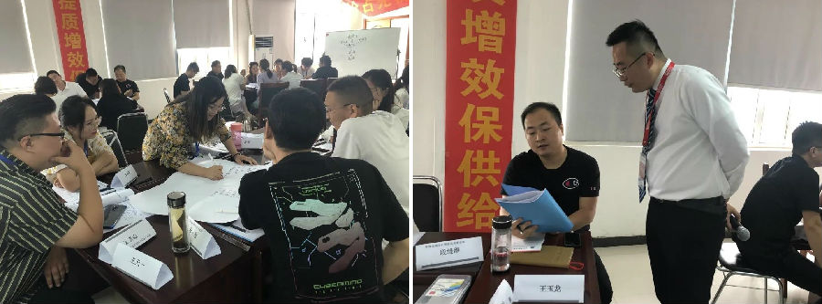 客户拜访是大家的兴奋点,四个小组PK:销售遇到的问题?我是这么解答的。小组代表发言后,要回答大家提出各种挑战问题,深度针对业务问题的探讨分享,让大家相互借鉴,互相分享自己的成功经验和许老师的精彩点评让大家受益匪浅!