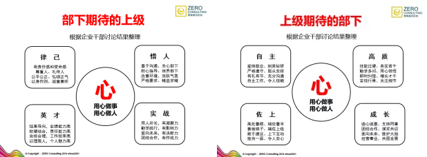 1、在上下级的彼此期待中,虽然罗列了诸多的文字,但最终归根结底都是对彼此“心”的一份要求,这心,是相互的认同感,是团队的凝聚力 2、在其位,主断,不在其位,主谋。 3、水满则溢,半杯易洒,每个人都需要有归零心态,不断提升自己的专业技术能力同时加强自己的思想认知建设,成就一支有凝聚力、有使命感、有执行力的团队,用智商去做事,用情商来处事。