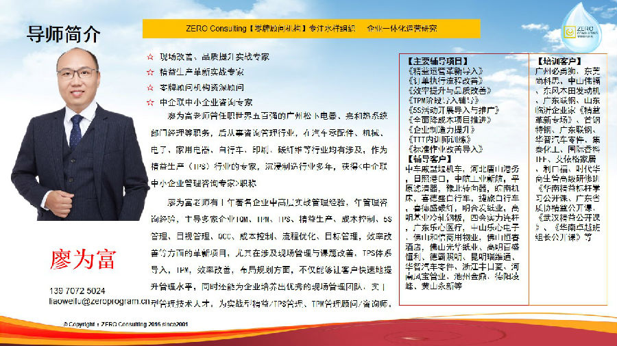 奥仕达电器(深圳)有限公司(以下简称“奥仕达”)携手零牌顾问机构在8月25-26日启动《TPM全员设备管理》项目。项目前期零牌顾问机构高级营销顾问刘雅歆老师,零牌顾问机构资深顾问、精益管理实战专家、廖为富老师对奥仕达进行深入的调研与探讨,为奥仕达定制了《TPM全员设备管理》实战项目,理论与案例实战相结合,致力于帮助奥仕达摆脱困境,持续发展,迈上更高的台阶。